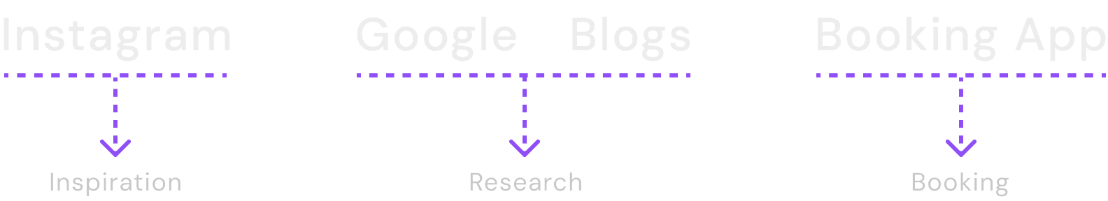The discovery phase - where travellers find places they've never heard of - happens on Instagram, Google or through friends.