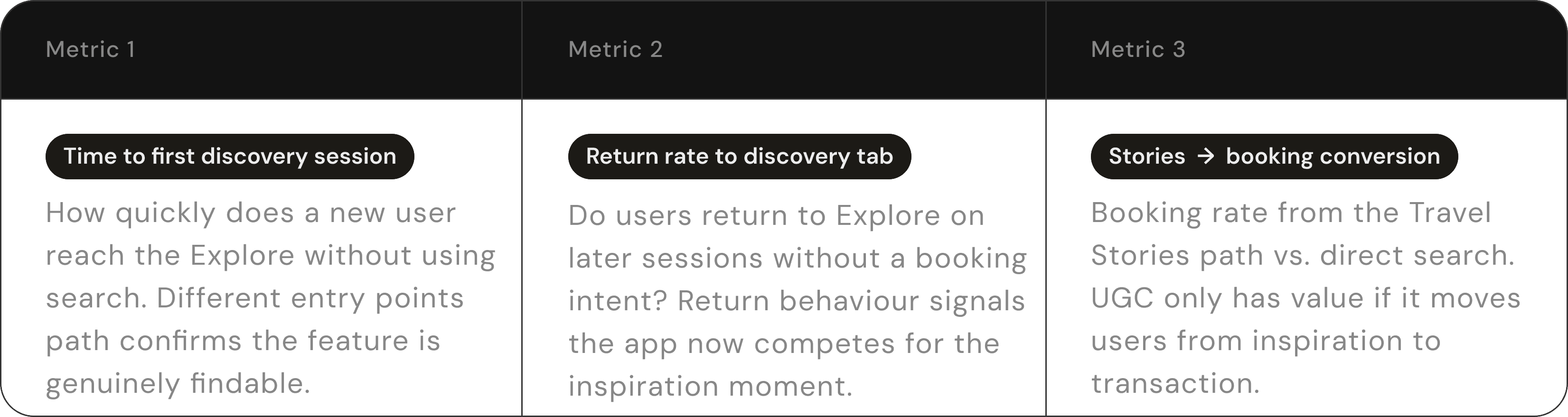 3 metrics that would confirm wheather discovery changes user behaviour - not just generates engagement.